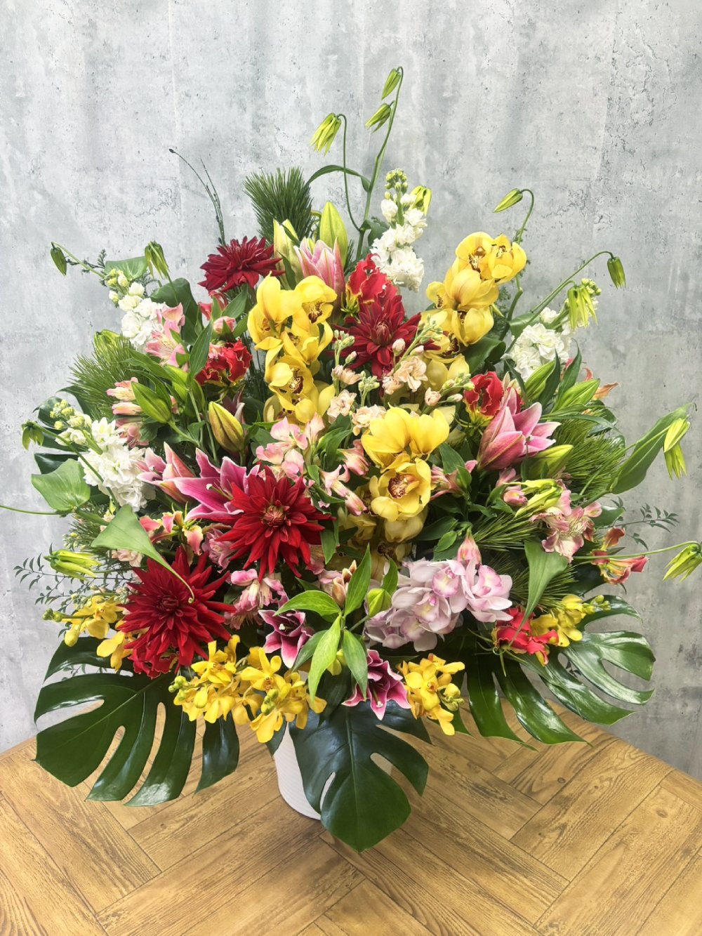 #2005 つぼ活け 通年可 14,800円 サイズ(高さ・幅・奥行)70×50×45実際に使用する花材・資材・花器・形状・高さは使用する物によって 多少異なります。お花のご準備に日数を頂く事がございます。ご了承下さい。 10,000円~, 活けこみ・つぼいけ