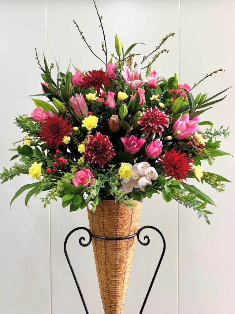 #1819 スタンド 1段 通年商品 21,000円 サイズ(高さ・幅・奥行)190×80×40cm 実際に使用する花材・資材・花器・形状・高さは使用する物によって 多少異なります。お花のご準備に日数を頂く事がございます。ご了承下さい。 1段, ピンク系, 生花スタンド