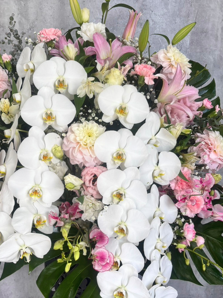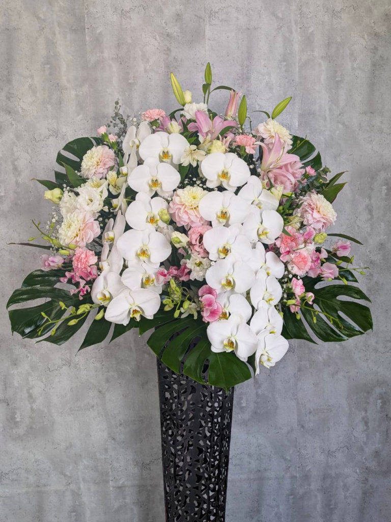 #1826 スタンド 1段 通年商品 22,000円 サイズ(高さ・幅・奥行)190×80×40cm 実際に使用する花材・資材・花器・形状・高さは使用する物によって 多少異なります。お花のご準備に日数を頂く事がございます。ご了承下さい。 1段, ピンク系, 生花スタンド