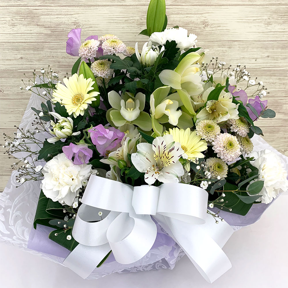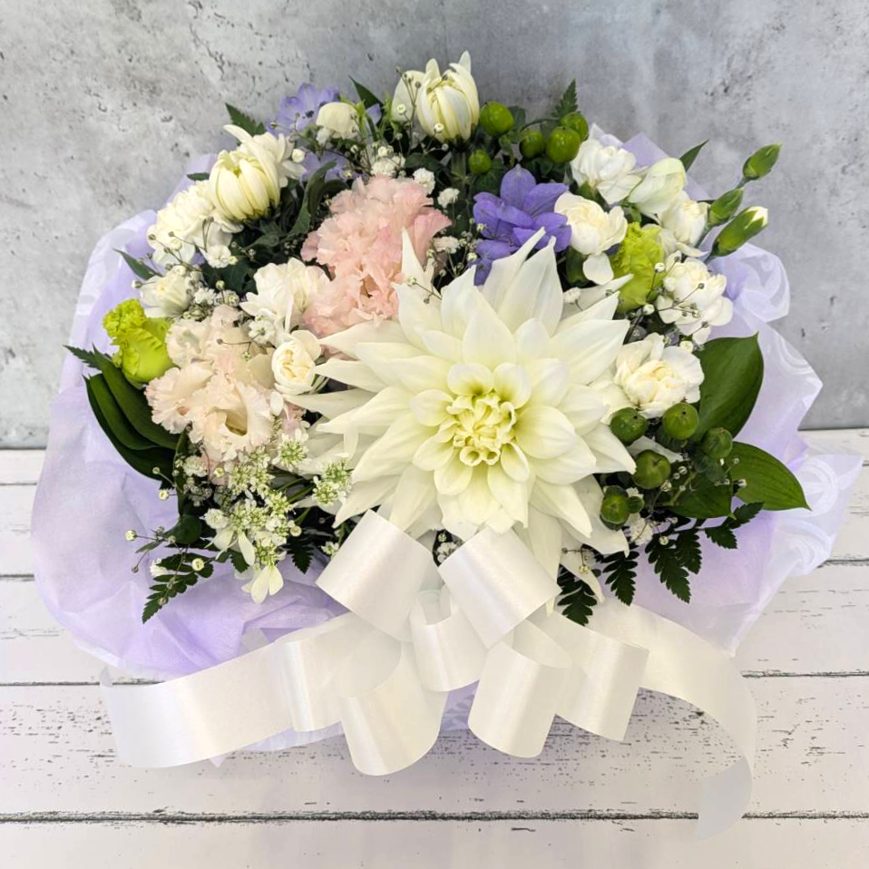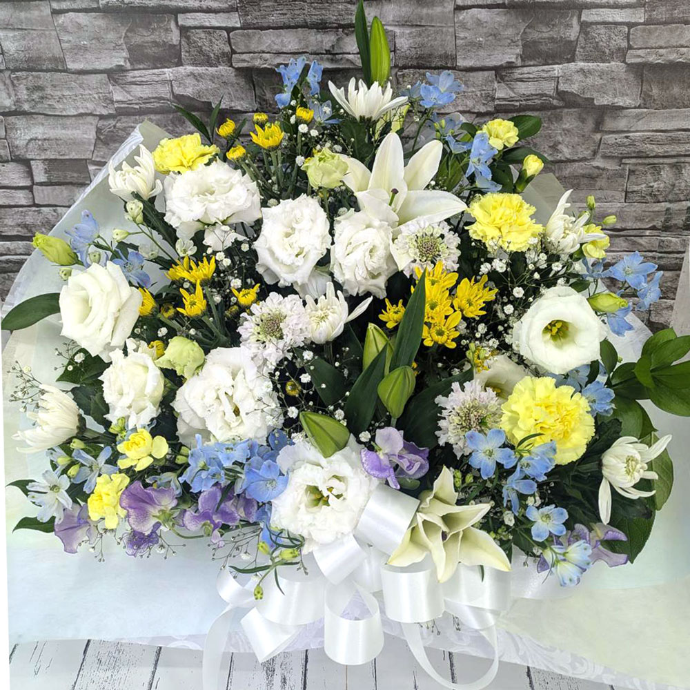 白、淡色を基本にしたアレンジメント 供え札・カード無料 円 […]